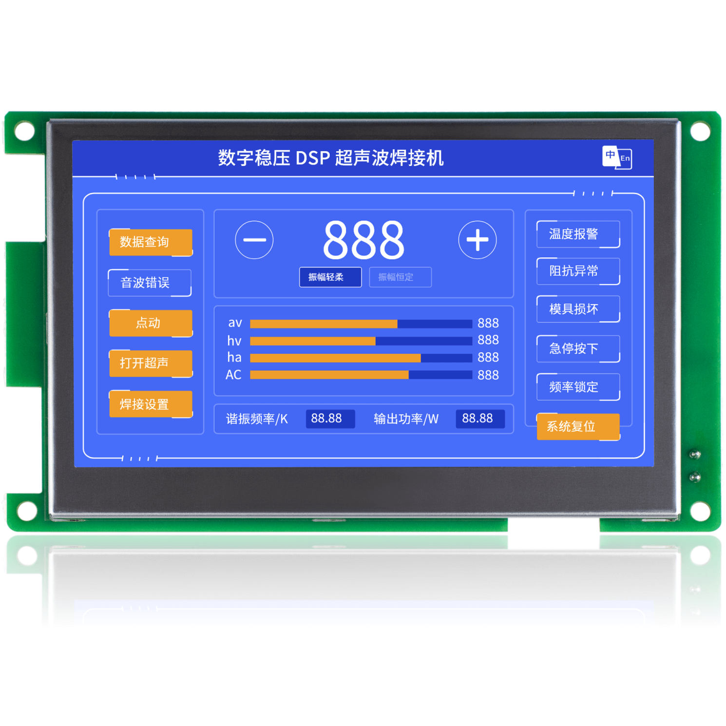 金璽HMI應(yīng)用在超聲波控制上,安裝在控制機(jī)箱上對超聲波進(jìn)行數(shù)據(jù)設(shè)定和監(jiān)控。